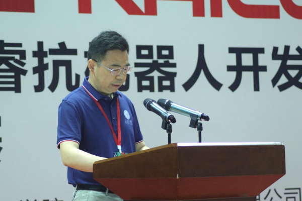 睿抗武汉办公室赛事总监杨群在致辞中深刻阐释了大赛主题“机器照护人”与“制造强国”战略的呼应关系,指出赛事在推动教育产业对接、发掘复合型人才、促进机器人技术创新应用等方面的重要意义。